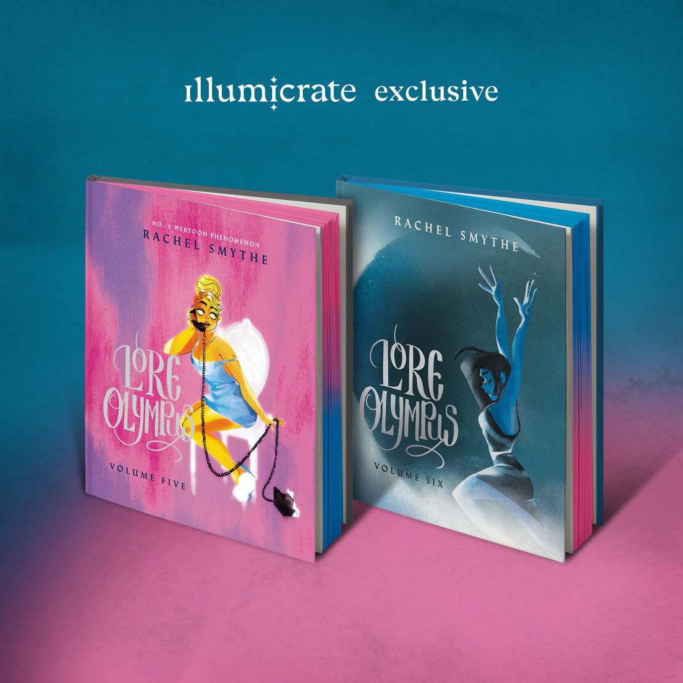 Our Illumicrate Exclusive: Lore Olympus Volumes 5 & 6 editions feature: